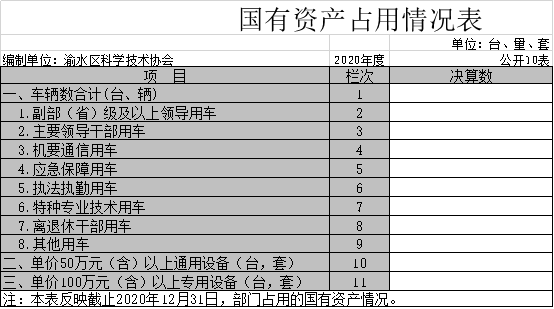 截止2020年12月31日,本部門(單位)國有資產占用情況見公開10表《國有資產占用情況表》。