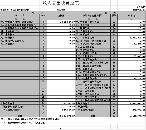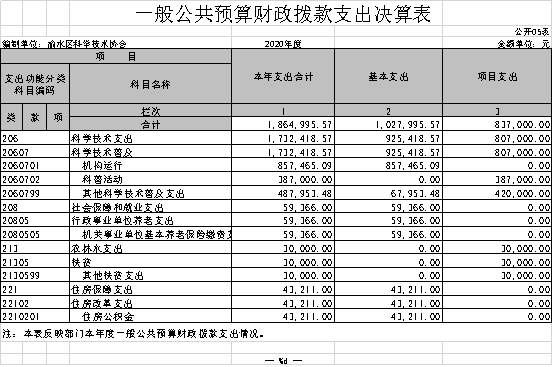 納入本套部門決算匯編范圍的單位共1個,即渝水科學技術協會本級。