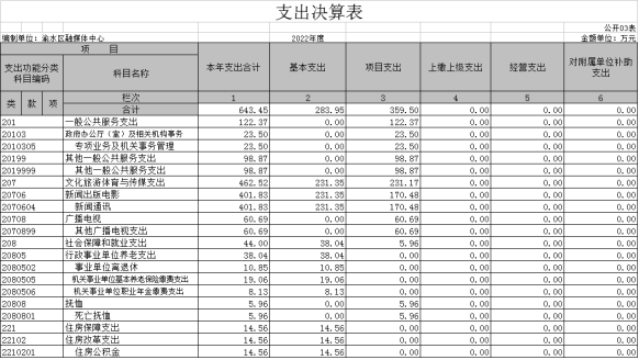 本單位2022年度支出總計643.45萬元,其中本年支出合計643.45萬元,較2021年減少53.82萬元,下降7.72%,主要原因是:落實縮減經費,過緊日子的精神;年末結轉和結余0萬元,較2021年增加(減少)0萬元,增長(下降)0%,主要原因是:無結轉結余。