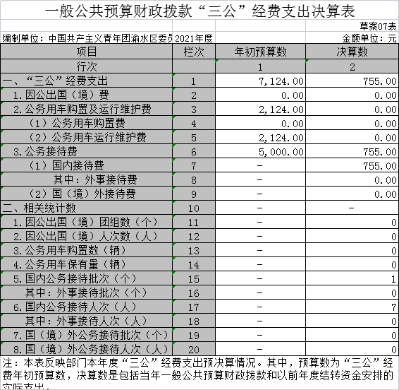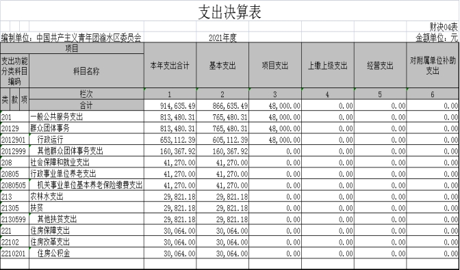 中國共產主義青年團渝水區委員會2021年度部門決算