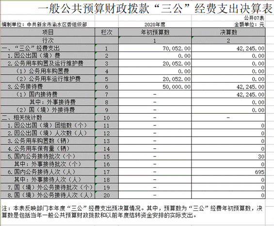 渝水區委組織部2020年度部門決算