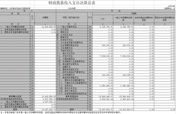 四、財政撥款收入支出決算總表