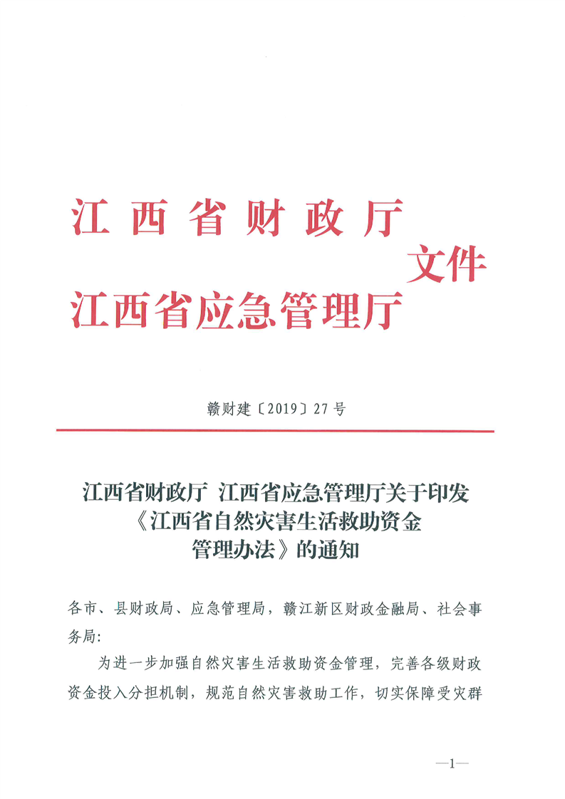 江西省自然災害救助資金管理辦法