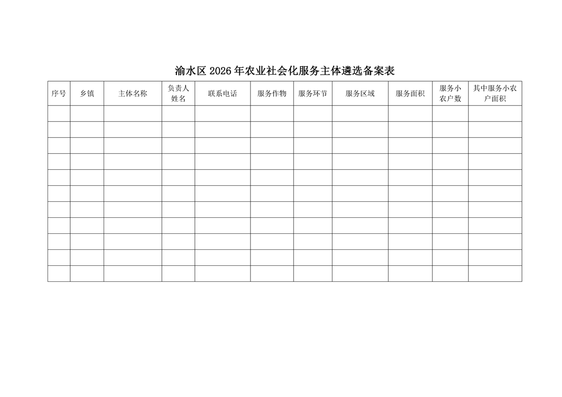 渝水區2026年農業社會化服務項目(新型農業經營)服務主體遴選方案
