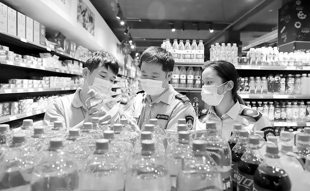 今年以來,江西省新余市渝水區(qū)市場監(jiān)管局在食品安全“守底線、查隱患、保安全”專項行動中,重拳出擊,嚴(yán)打重處生產(chǎn)經(jīng)營“山寨食品”、商標(biāo)侵權(quán)食品等違法行為。圖為6月6日,該局執(zhí)法人員在羅坊鎮(zhèn)一家超市檢查夏季消費熱點產(chǎn)品飲料的標(biāo)簽標(biāo)識情況。