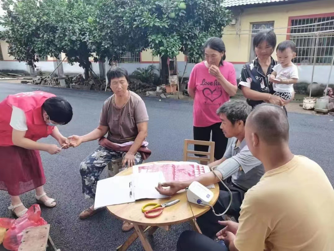 “你這個血糖還可以哦,要繼續按時吃藥。”團隊成員耐心地給李大爺講述健康生活方式,并把這次結果同之前服務記錄的血糖結果及變化情況進行對比整合,把貼心服務送到群眾心坎上。