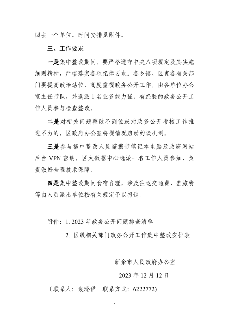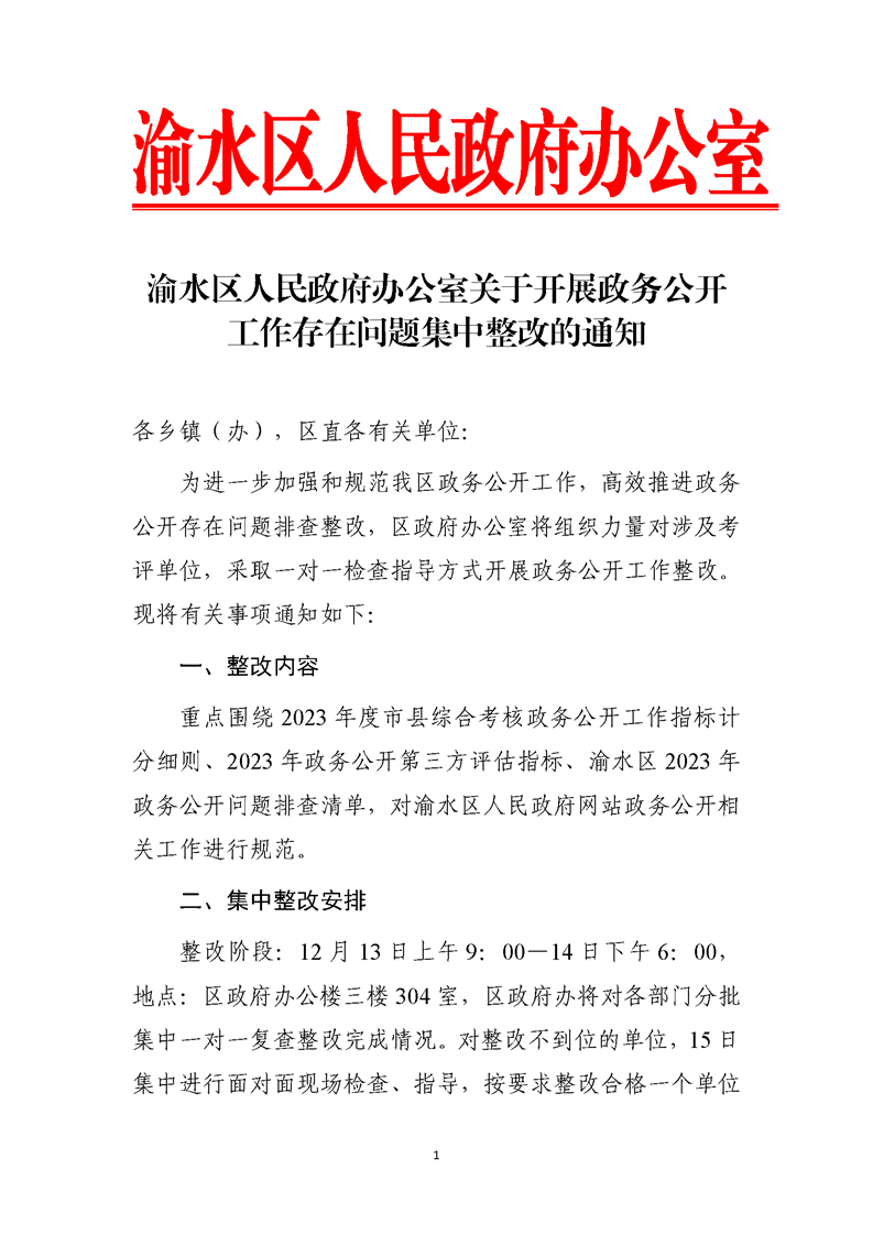 渝水區人民政府辦公室關于開展政務公開工作存在問題集中整改的通知