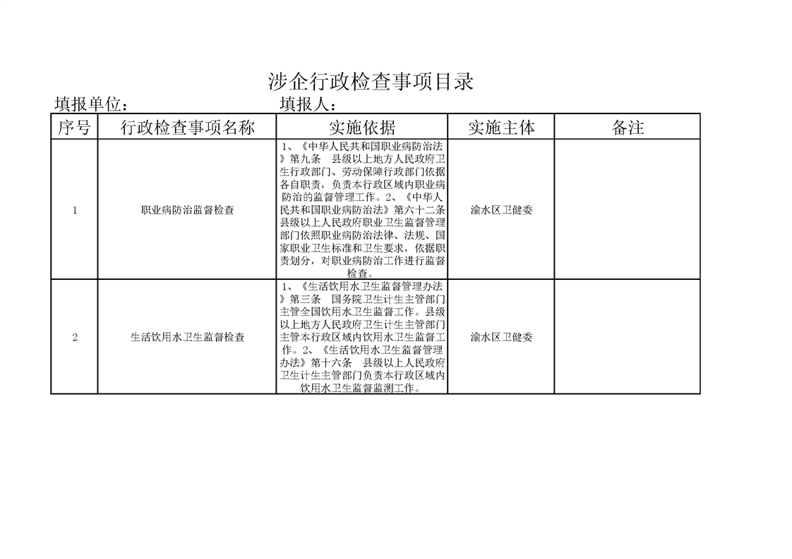 涉企行政檢查事項目錄