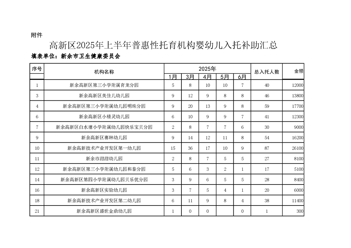 高新區(qū)2025年上半年普惠性托育機構(gòu)嬰幼兒入托補助匯總表