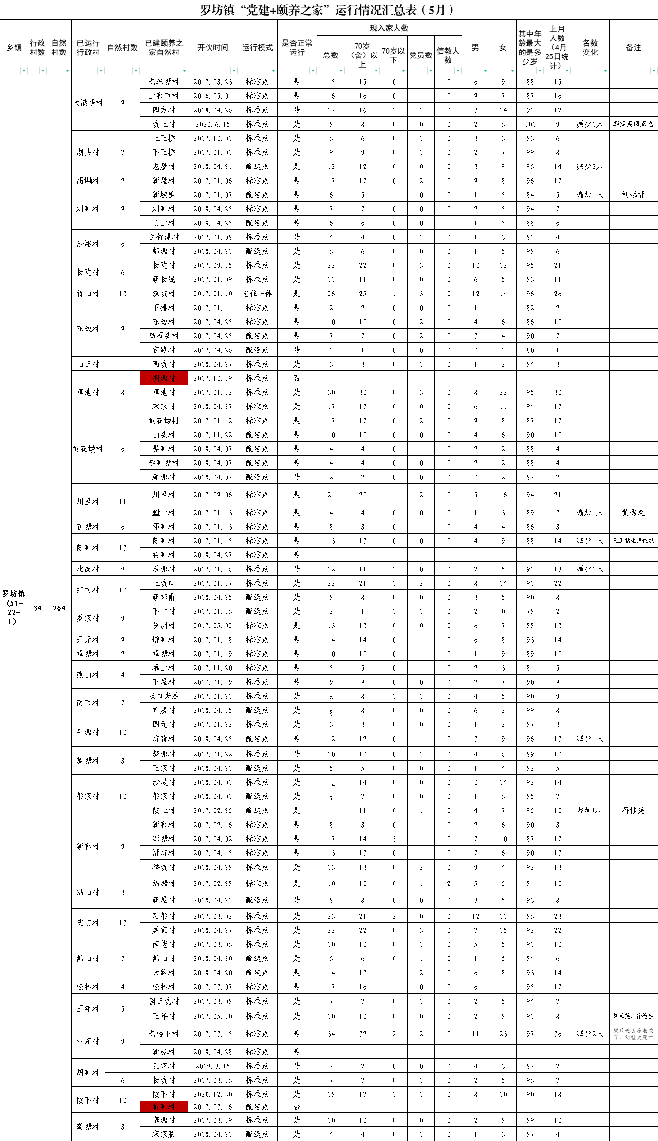 羅坊鎮“黨建+頤養之家”運行情況匯總表(5月)