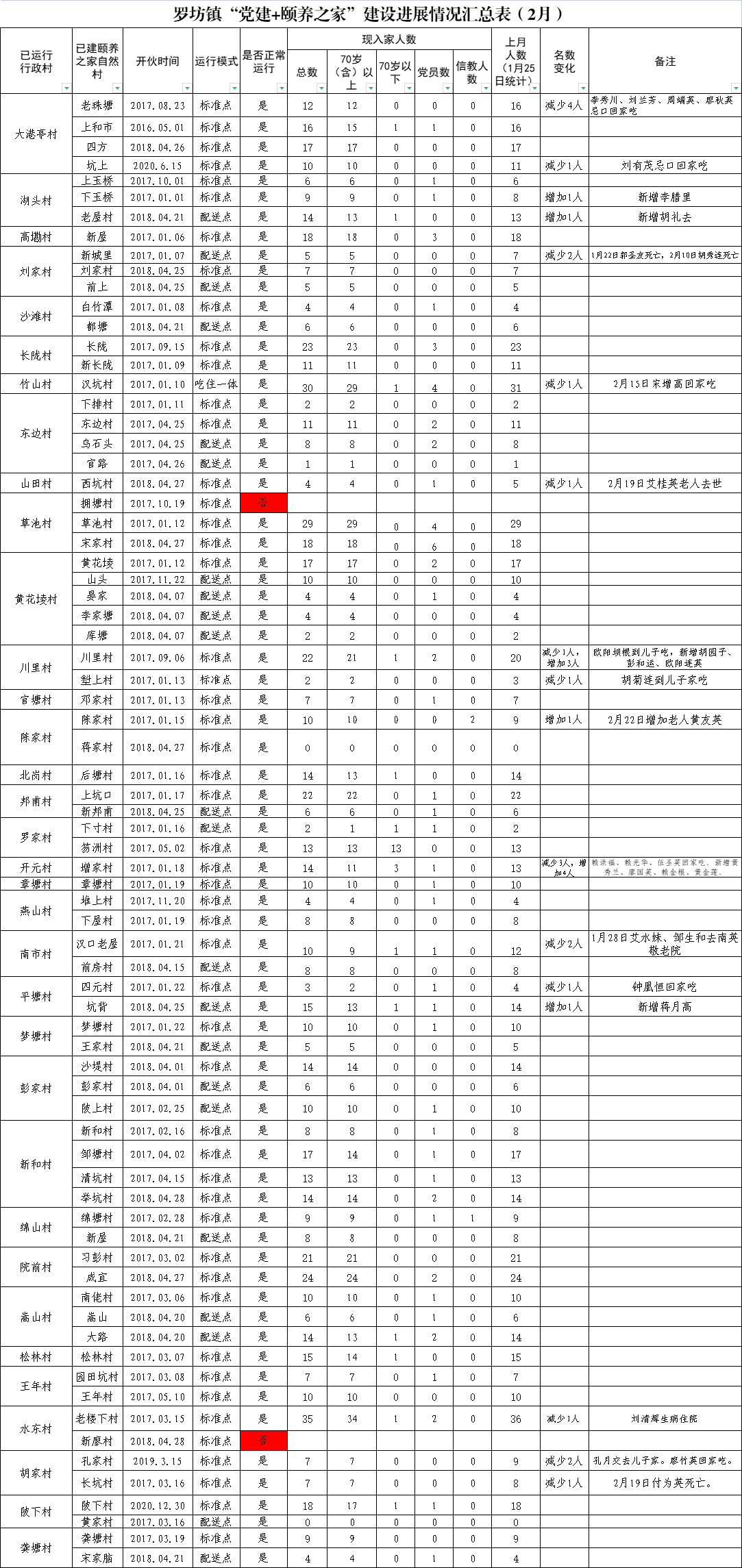 羅坊鎮“黨建+頤養之家”建設進展情況匯總表(2月)