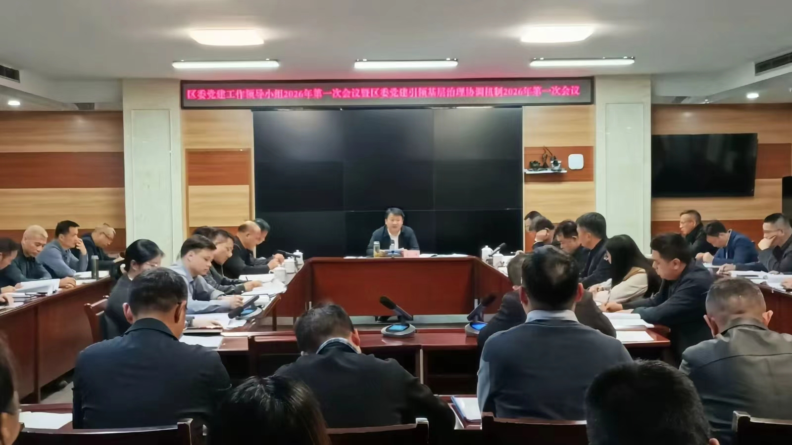 會議傳達學習了省委、市委有關會議和文件精神,審議了《2025年全區黨的建設工作總結》《區委黨建工作領導小組2026年工作要點》,聽取了全區開展樹立和踐行正確政績觀學習教育啟動部署、加強黨建帶團建等有關工作情況匯報。