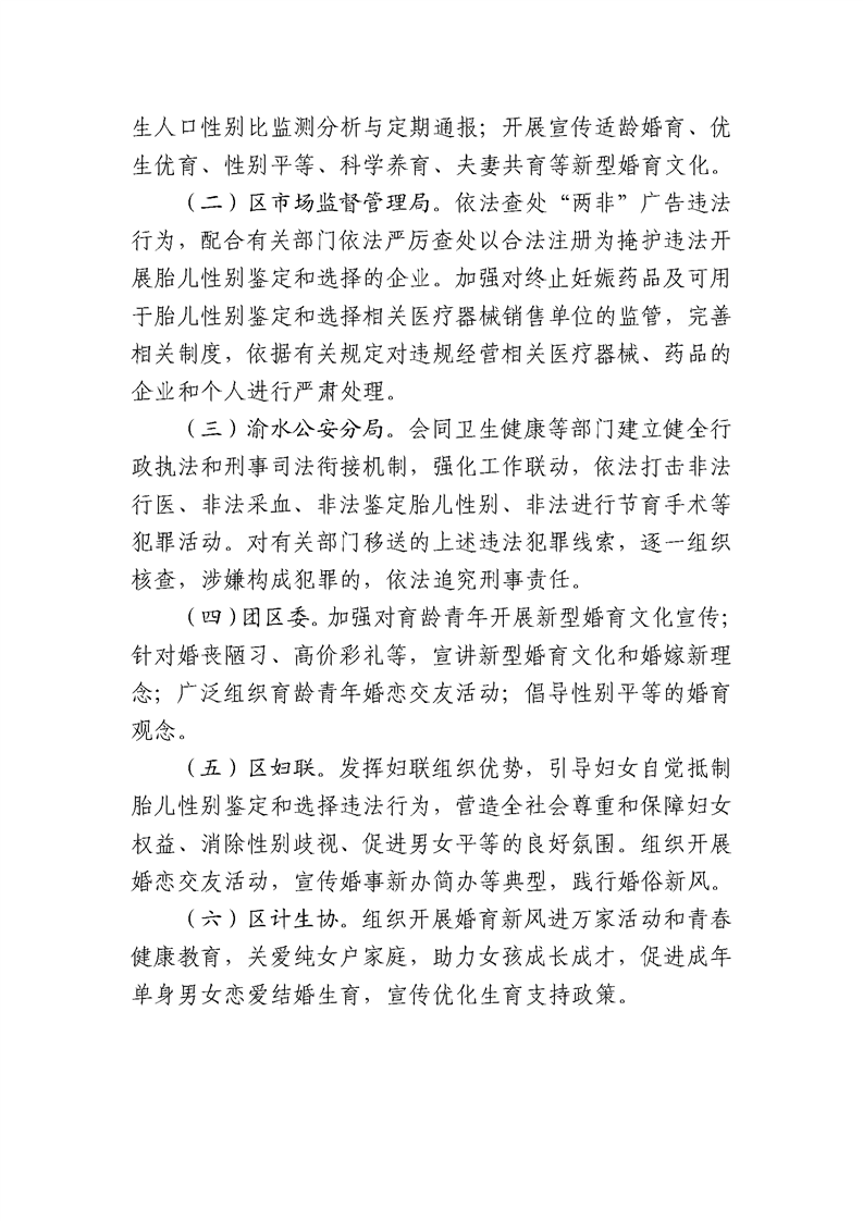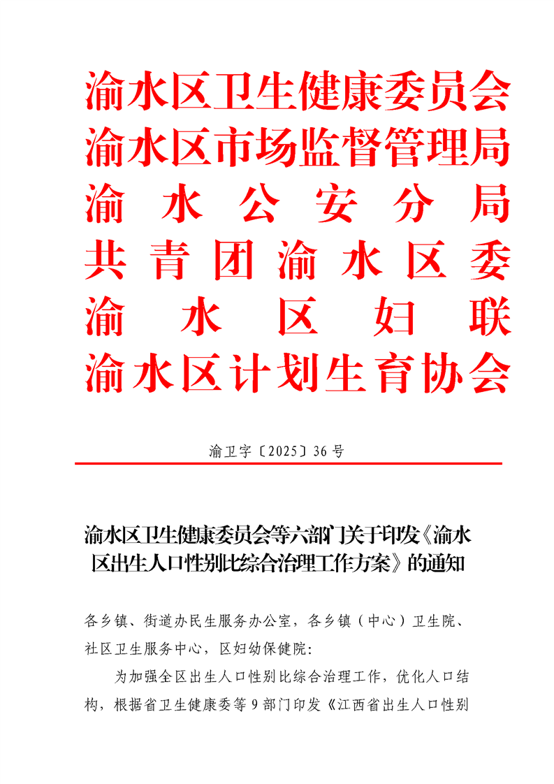 渝水區衛生健康委員會等六部門關于印發《渝水區出生人口性別比綜合治理工作方案》的通 知