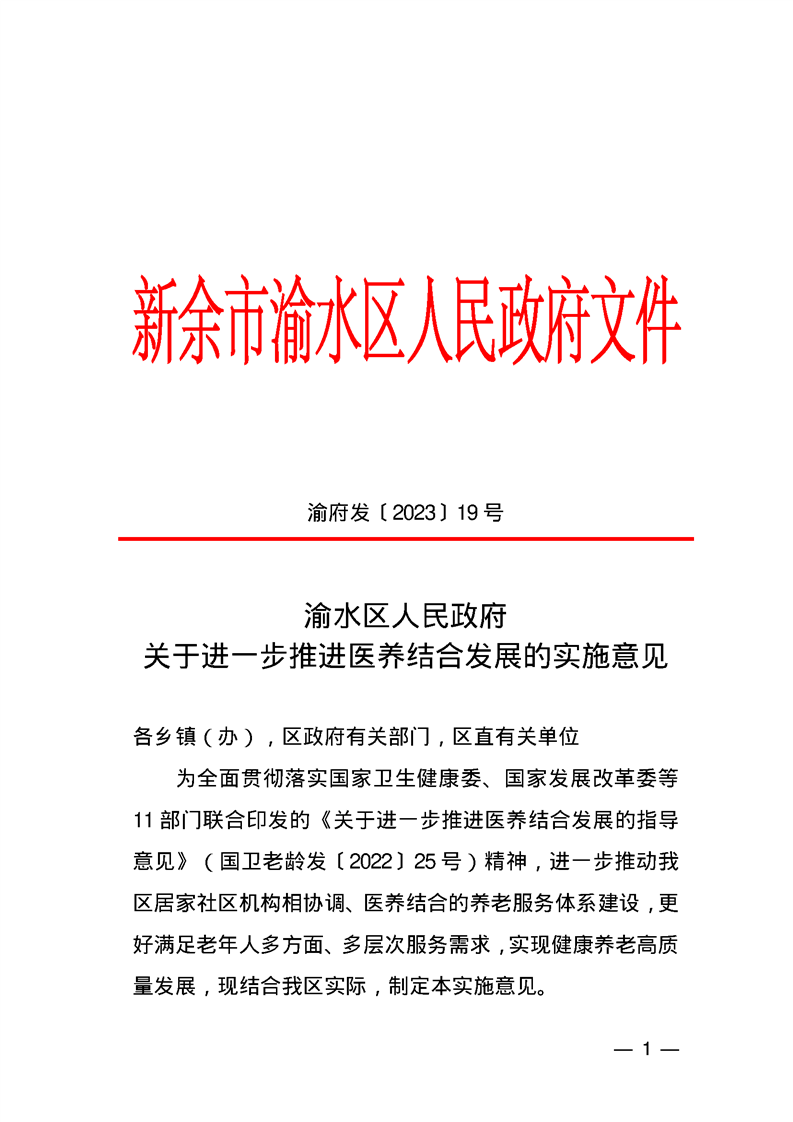 渝水區人民政府關于進一步推進醫養結合發展的實施意見