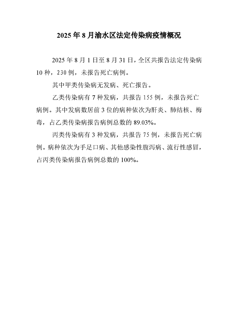 2025年8月渝水區(qū)法定傳染病疫情概況