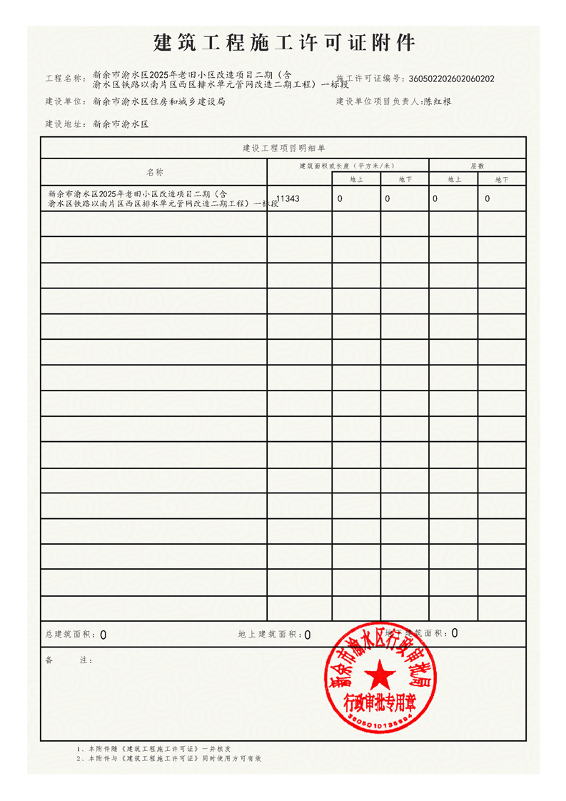 渝水區2025年老舊小區改造項目二期一標施工許可證
