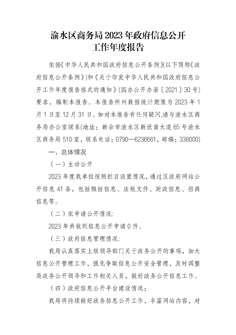 渝水區商務局2023年政府信息公開工作年度報告