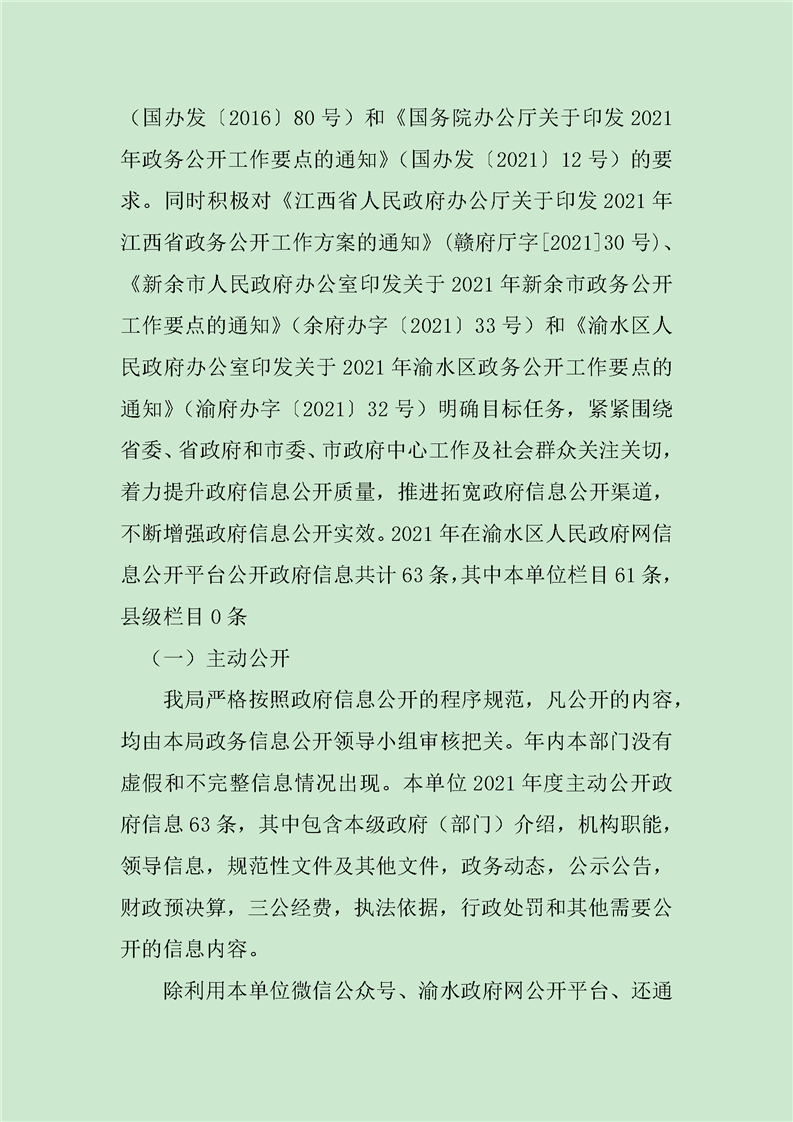 渝水區水利局2021年政府信息公開工作年度報告
