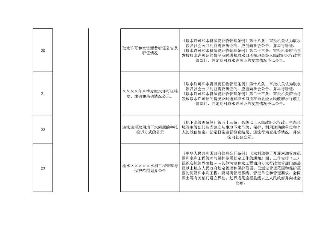 渝水區水利局主動公開事項目錄