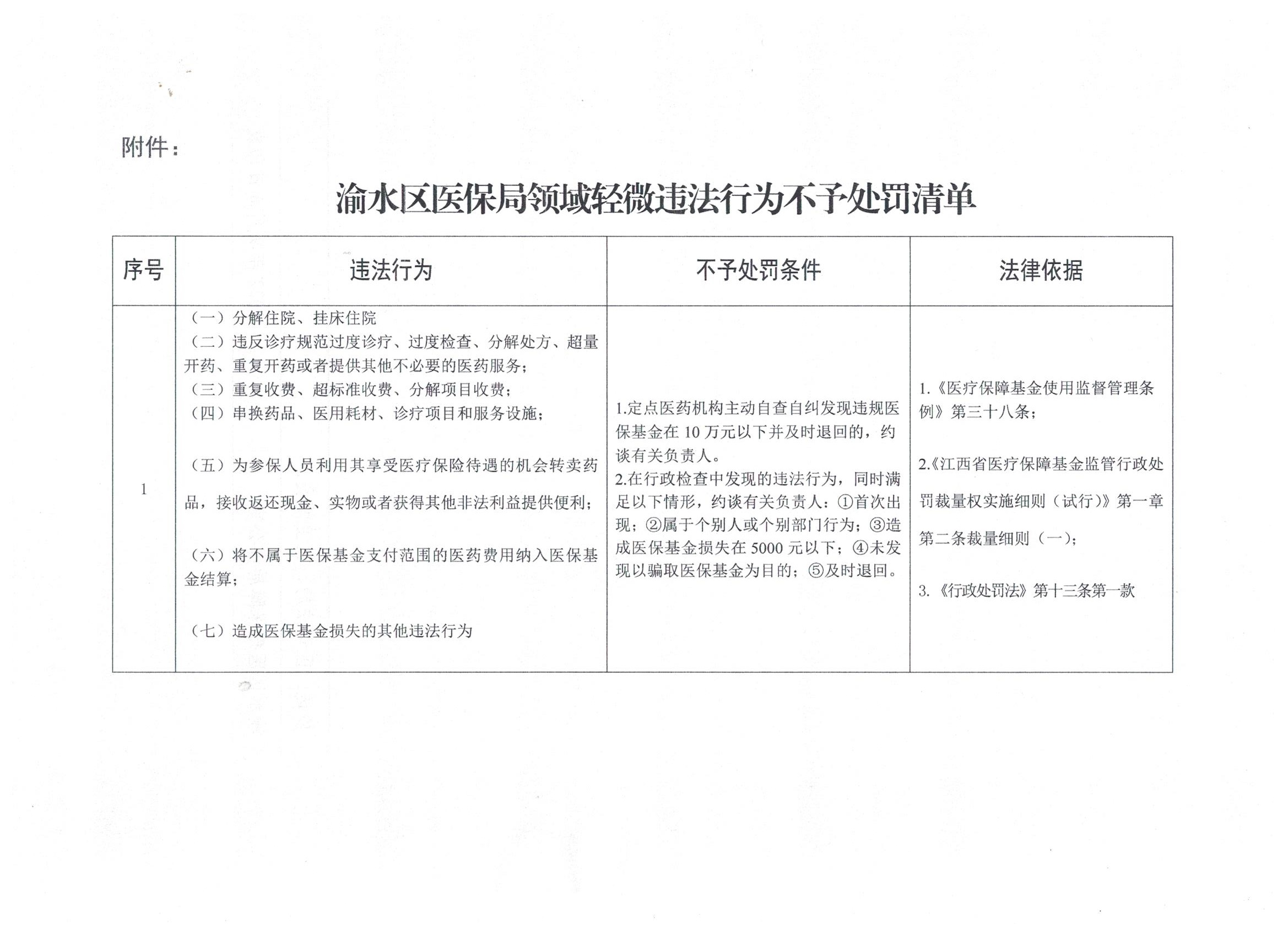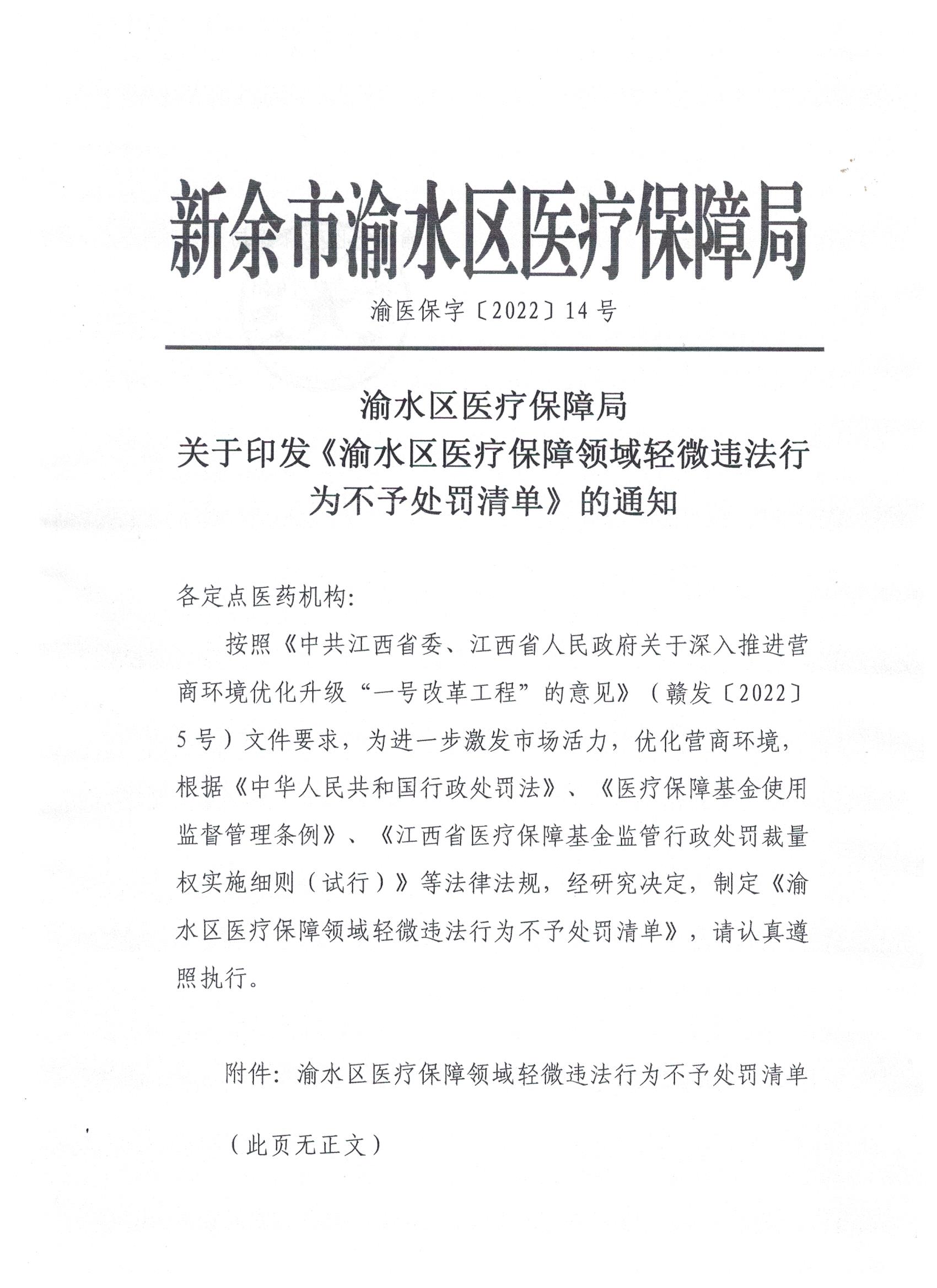 (有效)-關(guān)于印發(fā)《渝水區(qū)醫(yī)療保障局領(lǐng)域輕微違法行為不予處罰清單》的通知